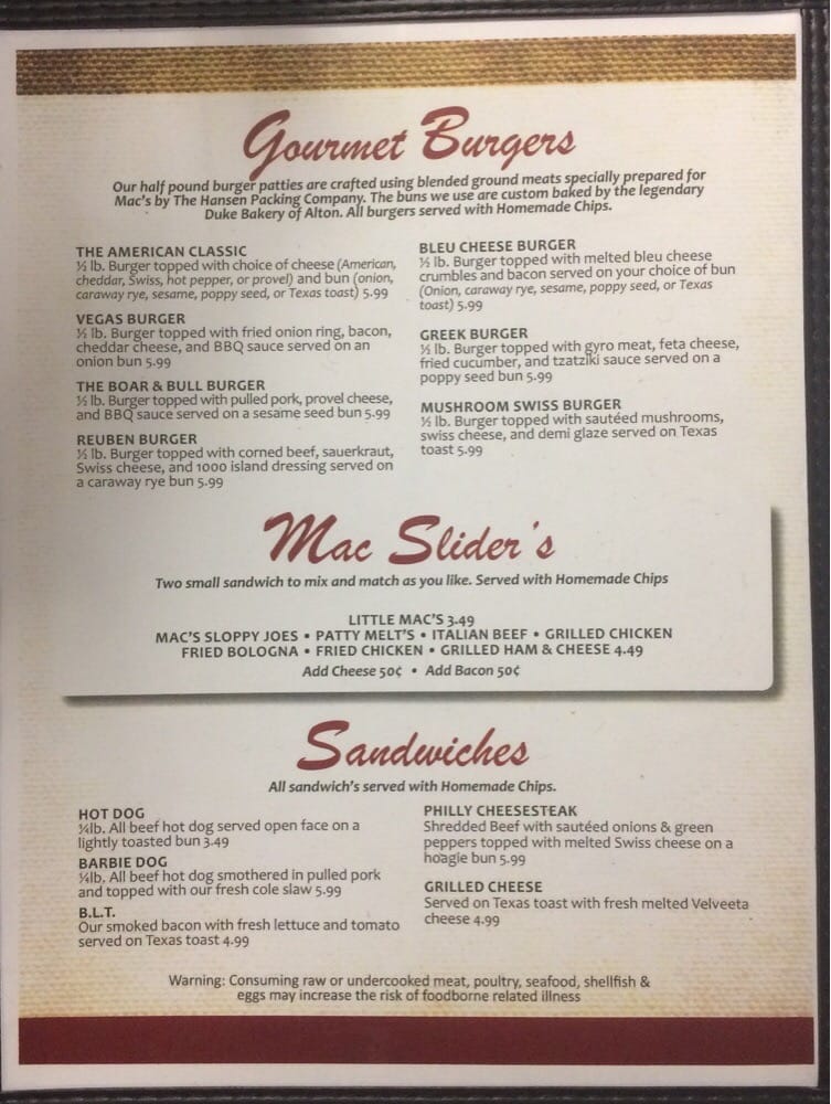 Welcome to Mac’s Downtown, your go-to destination for an exceptional American dining experience in the heart of Alton, IL. Nestled at 315 Belle St, Mac’s Downtown offers a delectable range of steakhouse classics, such as juicy bacon cheeseburgers and savory sliders, perfect for lunch or dinner.